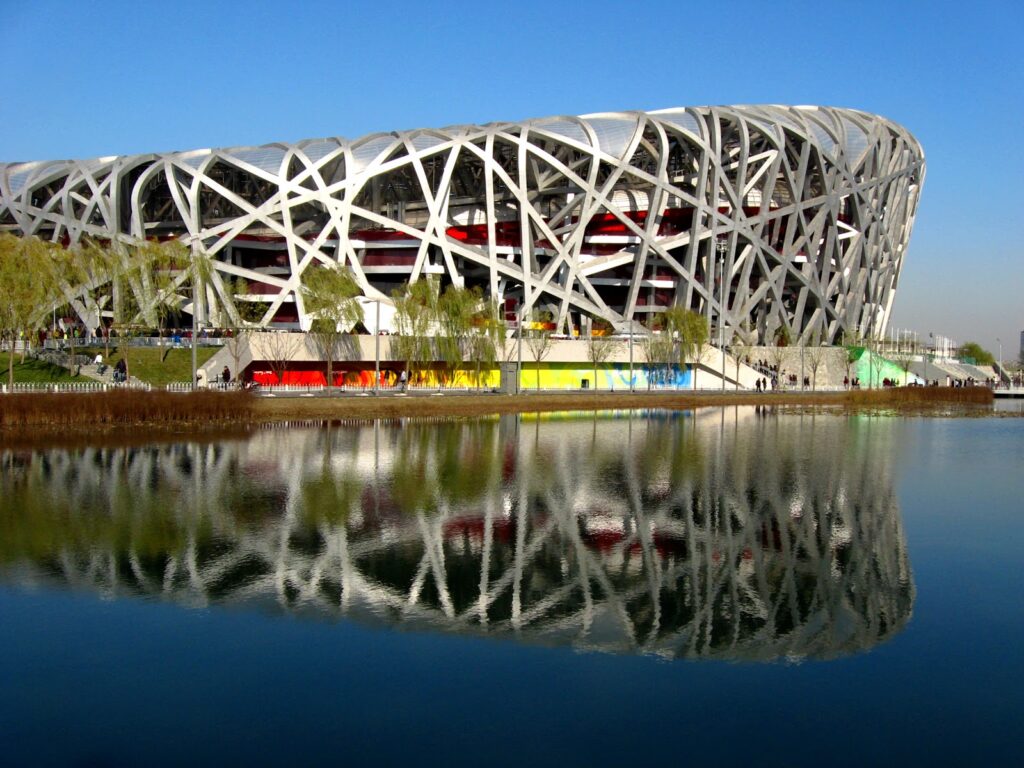 الملعب الوطني في بكين، المعروف باسم «عشّ الطائر». تحوّلت فيه الكتلة إلى شبكة إنشائية ظاهرة من الفولاذ المتشابك، جعلت الهيكل نفسه لغة معمارية، تجمع بين التعبير الرمزي والجرأة التقنية.