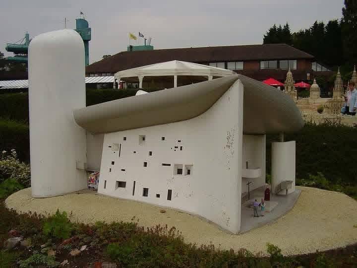 كنيسة رونشان، لوكوربوزييه، 1955 — عمل أيقوني تتجسّد فيه العمارة كنحتٍ ضوئي وروحي متحرّر من القوالب التقليدية.