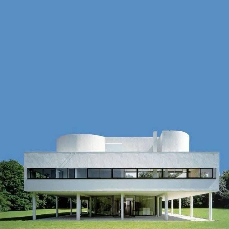 فيلا سافوا – لو كوربوزييه، 1929 . تمثل تطبيقًا مكتملًا لمبادئ العمارة الحديثة الخمسة التي صاغها لوكوربوزييه.