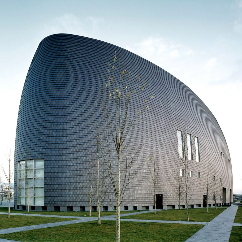 متحف ناغي للفن المعاصر (Nagi MoCA)، أراتا إيسوزاكي، 1994 — كتلة منحنية صامتة، تتحوّل فيها القشرة المعمارية إلى عنصر تعبيري مستقل.